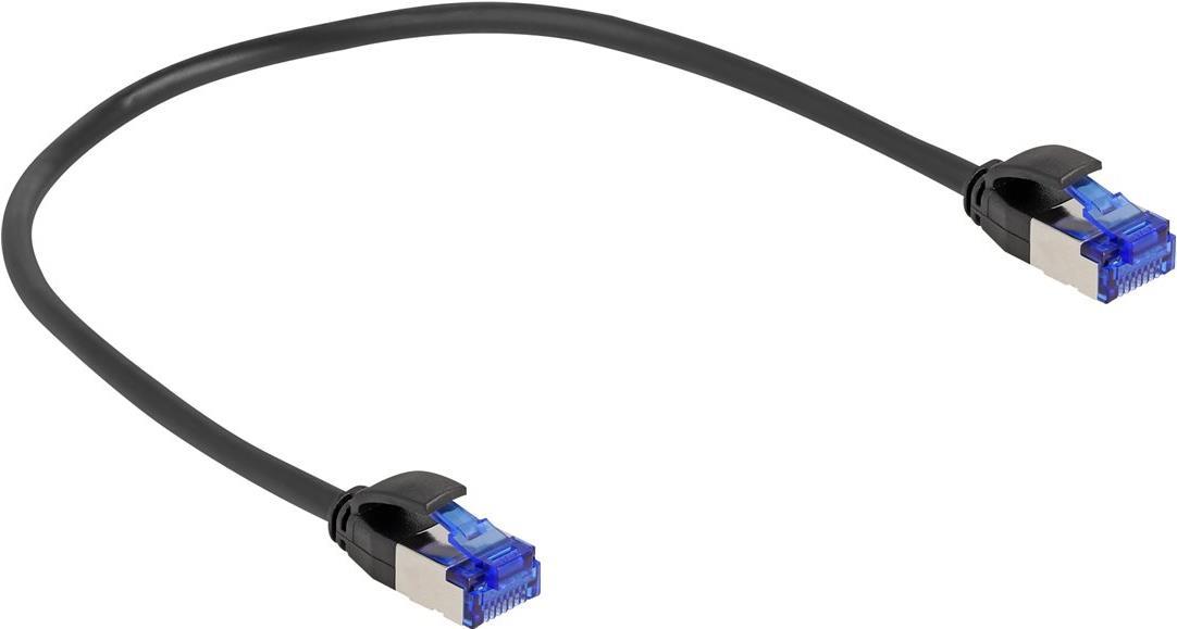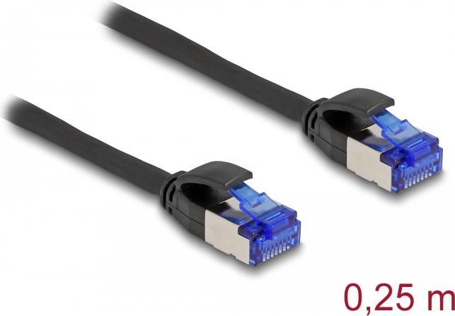 Delock - Netzwerkkabel - RJ-45 (M) zu RJ-45 (M) - 25cm - 4,5 mm - S/FTP - CAT 6a - halogenfrei, ohne Haken - Schwarz (80225)
