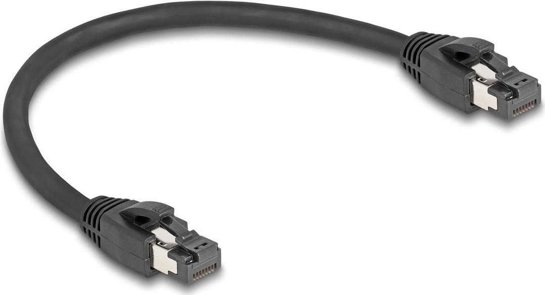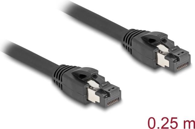 Delock - Netzwerkkabel - RJ-45 (S) zu RJ-45 (S) - 25cm - 7,5 mm - S/FTP - CAT 8,1 - ohne Haken, bis zu 40 Gbps Datentransferrate - Schwarz (80231)