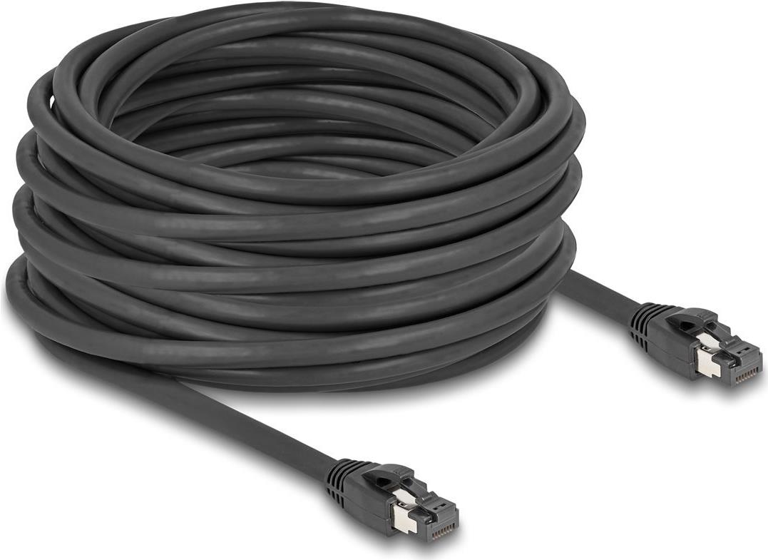 Delock - Patch-Kabel - RJ-45 (M) zu RJ-45 (M) - 15,0m - 7,5 mm - SFTP, PiMF - CAT 8,1 - halogenfrei, ohne Haken - Schwarz (80238)