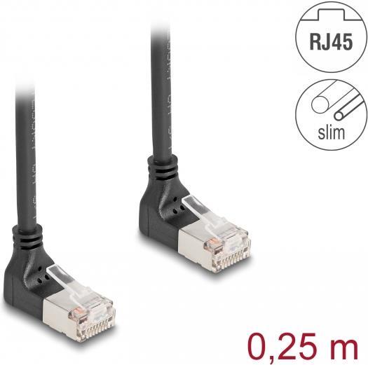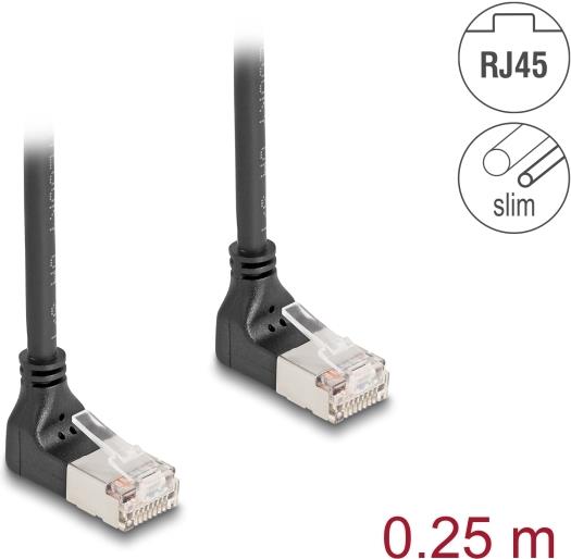 Delock RJ45 Netzwerkkabel Cat.6A S/FTP Slim 90° oben / oben gewinkelt 0,25 m schwarz (80279)