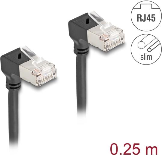 Delock RJ45 Netzwerkkabel Cat.6A S/FTP Slim 90° unten / unten gewinkelt 0,25 m schwarz (80297)