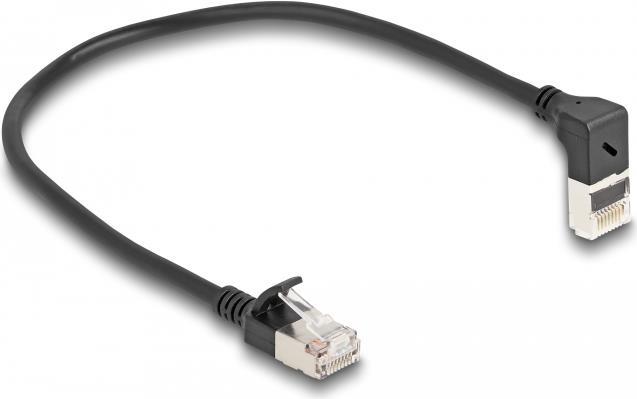 Entdecken Sie das Delock CAT 6a Netzwerkkabel, das für die Anforderungen moderner Netzwerkumgebungen entwickelt wurde. Mit seinem schlanken Profil von 30 American Wire Gauge (AWG) ermöglicht dieses Kabel eine einfache Installation und Organisation, selbst in engen Räumen. Sein halogenfreier Low Smoke Zero Halogen (LSZH)-Mantel erhöht die Sicherheit, da im Brandfall weniger giftige und korrosive Gase freigesetzt werden, und trägt so zu einer gesünderen, nachhaltigeren Umwelt bei. Das einzigartige Design mit einem um 90° abgewinkelten linken Stecker und einem geraden rechten Stecker, beide RJ-45, gewährleistet eine sichere und zuverlässige Verbindung. Dieses Netzwerkkabel erfüllt mehrere wichtige Normen, darunter RoHS 2011/65/EU, Richtlinie 2015/863 und Richtlinie 2017/2102/EU, was die Einhaltung hoher Sicherheits- und Umweltstandards widerspiegelt. Ob zu Hause oder im Büro, dieses Delock-Netzwerkkabel ist eine ausgezeichnete Wahl für eine robuste, sichere und effiziente Netzwerkverbindung.