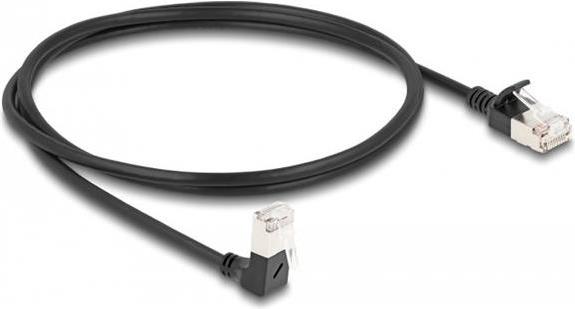 Delock RJ45 Netzwerkkabel Cat.6A S/FTP Slim 90° unten gewinkelt / gerade 1 m schwarz (80305)