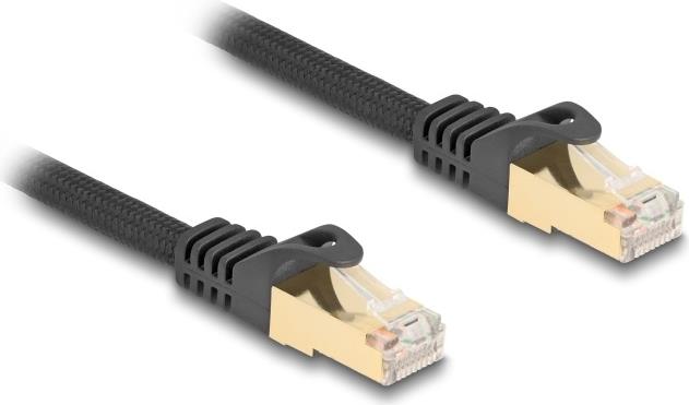 Delock - Patch-Kabel - RJ-45 (M) zu RJ-45 (M) - 3,0m - 7 mm - S/FTP - CAT 6a - ohne Haken, Gewebebeschichtung - Schwarz (80319)