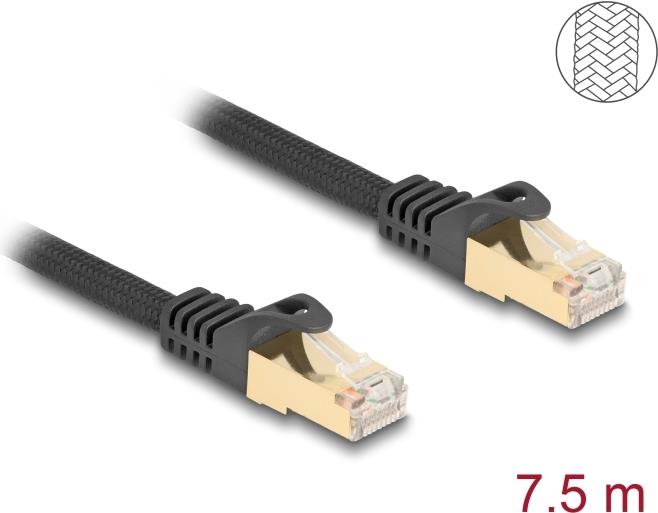 Delock - Patch-Kabel - RJ-45 (M) zu RJ-45 (M) - 7,5m - 7 mm - S/FTP - CAT 6a - ohne Haken, Gewebebeschichtung - Schwarz (80321)
