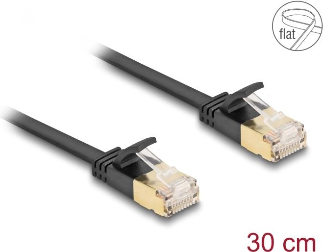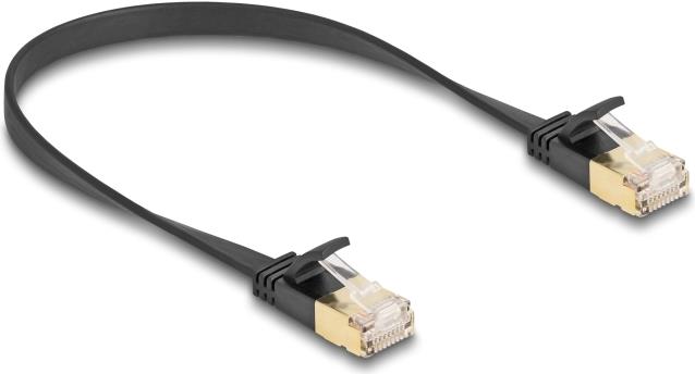 Delock RJ45 Netzwerkkabel Cat.6A Stecker zu Stecker mit robuster Rastnase und Cat.7 Rohflachbandkabel U/FTP 0,3 m schwarz (80343)
