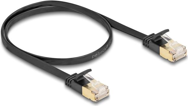 Delock RJ45 Netzwerkkabel Cat.6A Stecker zu Stecker mit robuster Rastnase und Cat.7 Rohflachbandkabel U/FTP 0,5 m schwarz (80344)