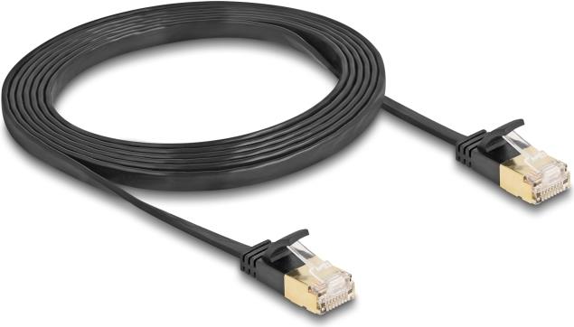 Delock RJ45 Netzwerkkabel Cat.6A Stecker zu Stecker mit robuster Rastnase und Cat.7 Rohflachbandkabel U/FTP 2 m schwarz (80346)