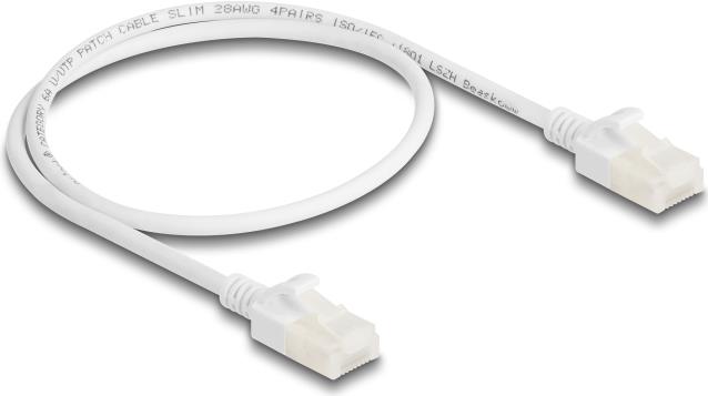 Delock RJ45 Netzwerkkabel Cat.6A Stecker zu Stecker mit robuster Rastnase Industrietauglich U/UTP Slim 0,5 m weiß (80358)