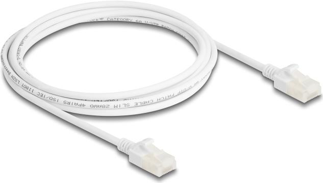 Delock RJ45 Netzwerkkabel Cat.6A Stecker zu Stecker mit robuster Rastnase Industrietauglich U/UTP Slim 2 m weiß (80360)