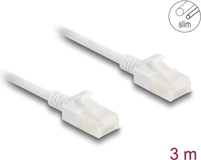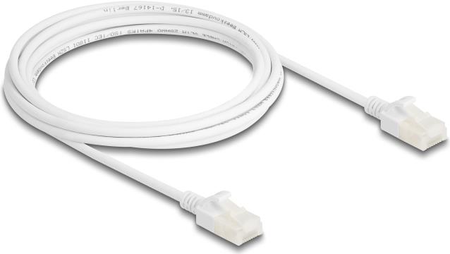 Delock RJ45 Netzwerkkabel Cat.6A Stecker zu Stecker mit robuster Rastnase Industrietauglich U/UTP Slim 3 m weiß (80361)