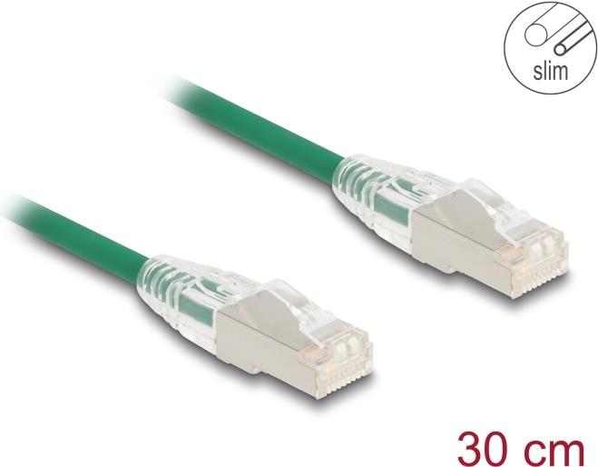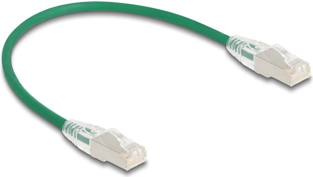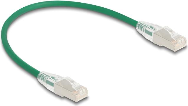 Delock RJ45 Netzwerkkabel Cat.6A Stecker zu Stecker mit gebogener Rastnase U/FTP Slim 0,3 m grün (80363)