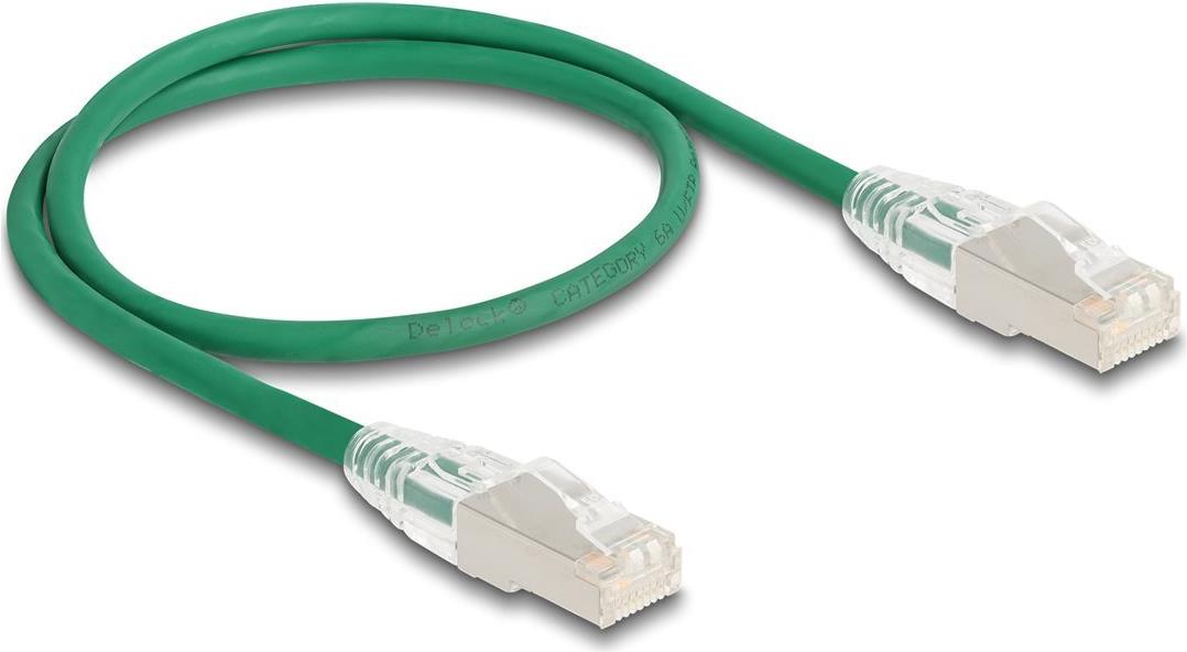 Delock RJ45 Netzwerkkabel Cat.6A Stecker zu Stecker mit gebogener Rastnase U/FTP Slim 0,5 m grün (80364)