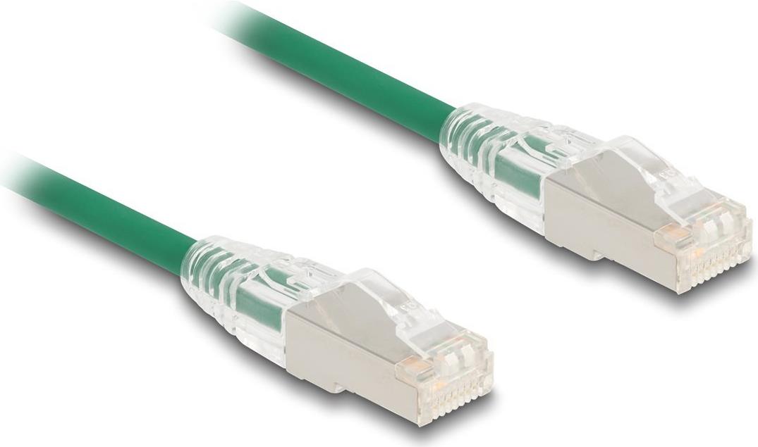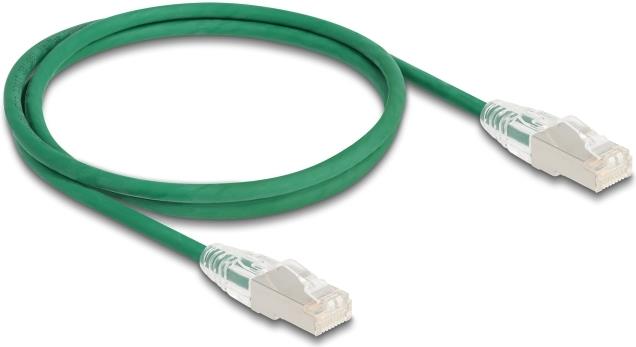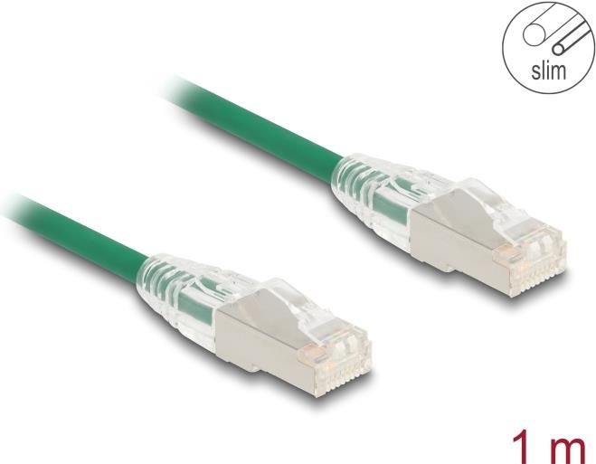 Delock RJ45 Netzwerkkabel Cat.6A Stecker zu Stecker mit gebogener Rastnase U/FTP Slim 1 m grün (80365)