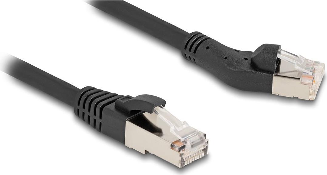 Das Kabel mit einer getesteten Frequenz von bis zu 2000 MHz besteht aus einer 28 AWG-Konstruktion, die ein Gleichgewicht zwischen Flexibilität und Haltbarkeit herstellt. Die Stecker sind auf der linken Seite gerade und auf der rechten Seite um 45° nach links abgewinkelt, was die Installation in engen Räumen erleichtert. Dieses Patchkabel ist für einen Temperaturbereich von -20°C bis 60°C geeignet und erfüllt eine Vielzahl von Umweltanforderungen, wodurch es sich für verschiedene Anwendungen eignet.