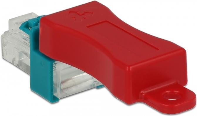 Der RJ45 Secure Clip mit Stecker von Delock lässt sich in der RJ45 Buchse verriegeln, und die Buchse wird gesperrt und vor unbefugter Benutzung gesichert. So kann der physikalische Zugang zum Netzwerk in sicherheitsrelevanten Bereichen, z. B. in öffentlichen Räumen oder in Rechenzentren, kontrolliert werden.