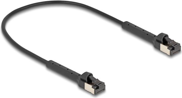 Delock - Patch-Kabel - RJ-45 (M) neigbar bis zu 60° zu RJ-45 (M) neigbar bis zu 60° - 25cm - 3,8 mm - U/FTP - CAT 8,1 - schmal, bis zu 40 Gbps Datentransferrate, halogenfrei, geformt, ohne Haken - Schwarz (80938)