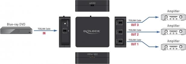 | Schnittstellen | 1 x TOSLINK-Eingang 3 x TOSLINK-Ausgang 1 x micro-USB input Type B |