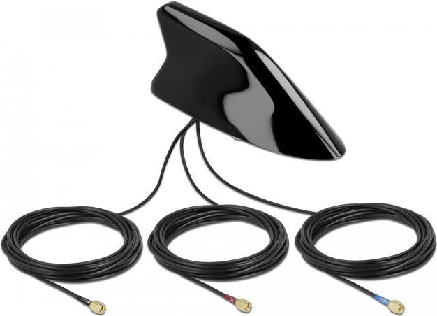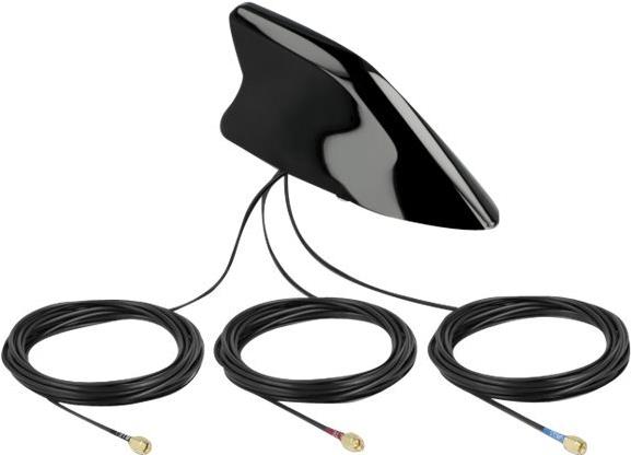 Diese Multibandantenne von Delock dient der Befestigung auf einem Autodach. Die sogenannte Shark Fin Antenne verfügt über drei verschiedene Frequenzbänder. Die GPS Patchantenne empfängt die Signale der Globalen Navigations Satelliten Systeme GALILEO und GPS. Und arbeitet auch in allen gängigen LTE Bändern. Mit Hilfe des 2,4-GHz-Frequenzbandes wird zudem der WLAN Bereich abgedeckt.