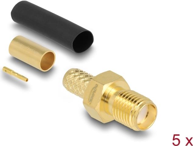 Diese Buchse inklusive passendem Schrumpfschlauch von Delock eignet sich zur Verbindung von Komponenten der Hochfrequenztechnik.