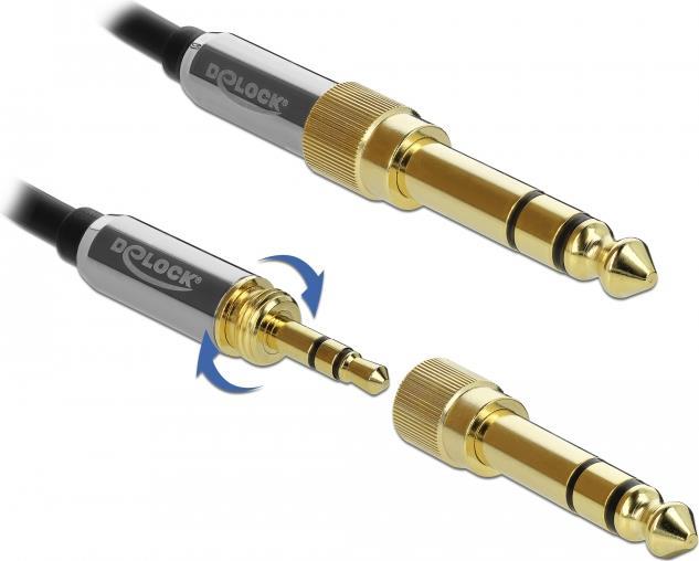 Dieses Klinkenkabel von Delock dient als Verlängerung einer 3,5 mm bzw. 6,35 mm Klinkenverbindung. Der beiliegende Klinkenadapter lässt sich auf den 3,5 mm Stecker schrauben und sorgt so für eine stabile Verbindung. Somit ist das Kabel auch zum Anschluss von Audio Geräten mit einer 6,35 mm Schnittstelle geeignet.