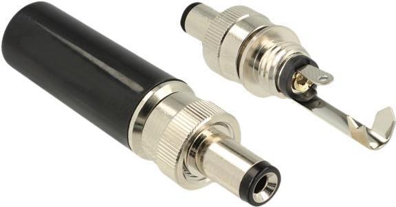 Ce connecteur DC de Delock est fait pour souder un câble et peut être utilisé pour connecter différents appareils ayant une prise jack DC 5,5 x 2,1 mm. Le connecteur à vis sur la prise est pour une bonne connexion avec des jacks DC appropriés de Delock, par exemple, l’article 89911.