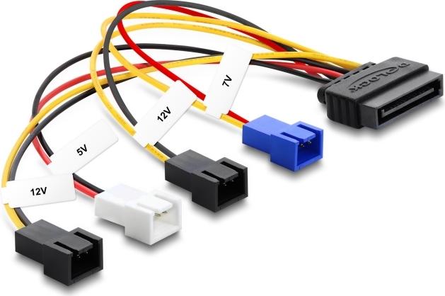 Delock Stromversorgungskabel SATA 15 Pin Stecker zu 4 x 2 Pin Lüfter (12 V / 7 V / 5 V) 20 cm (80656)