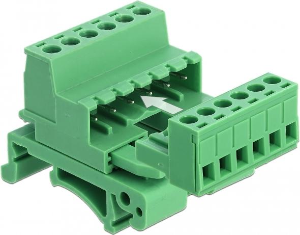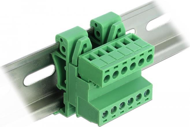 Dieses Terminalblock Set von Delock ist zur Montage an einer Hutschiene geeignet. Damit können z. B. Daten- oder Stromkabel über den Terminalblock angeschlossen werden.