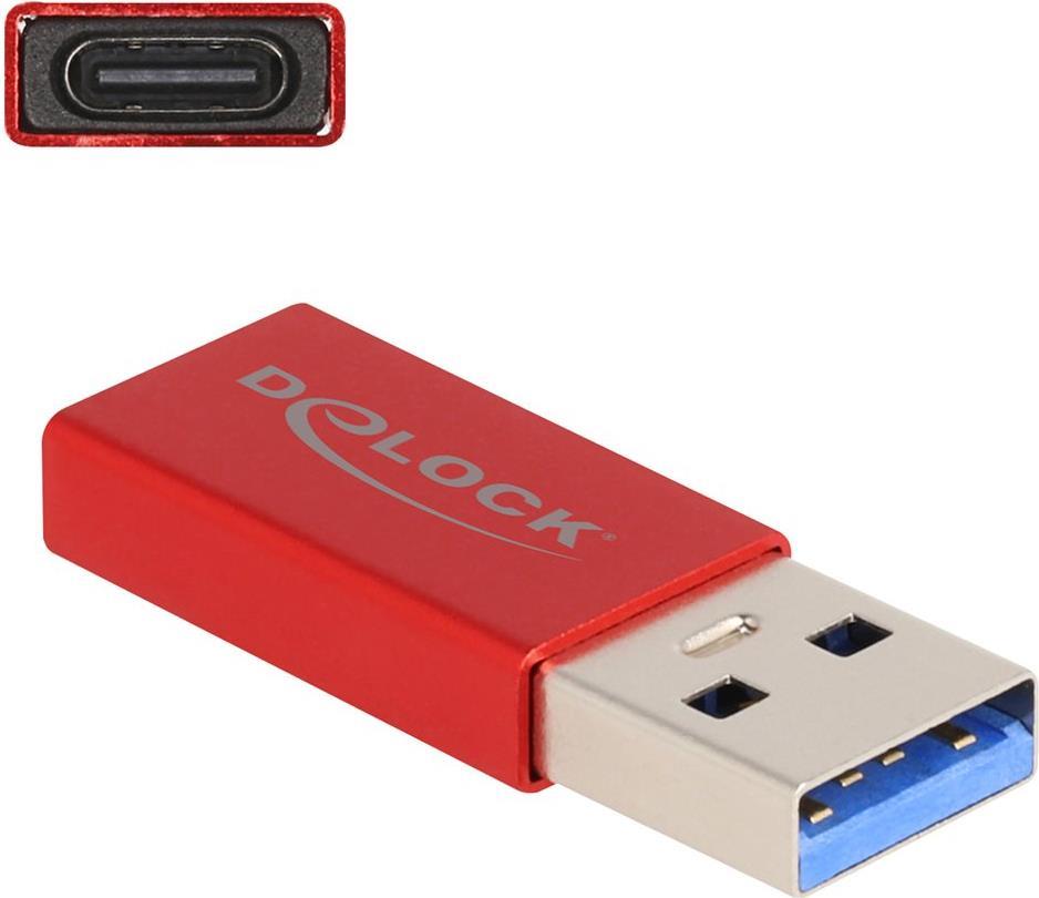 Delock - USB-Adapter - USB Typ A (M) zu 24 pin USB-C (W) - USB 3.2 Gen 2 - 5 V - 900 mA - bis zu 10 Gbps Datentransferrate - Rot (60044)