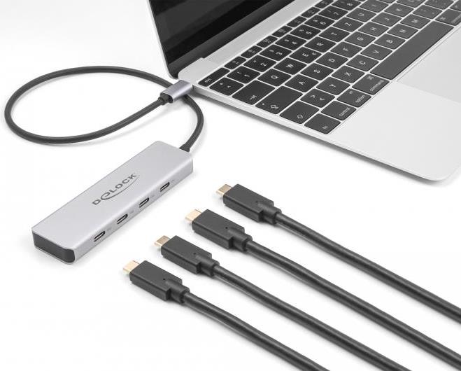 Der USB-Hub von Delock ist der mobile Begleiter für Laptops oder Tablets mit USB Type-C™ Anschluss. Bis zu 4 USB Type-C™ Geräte können an den Hub angeschlossen werden.