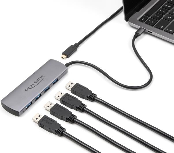 Erleben Sie eine nahtlose Konnektivitätslösung mit dem Delock USB-C-Kabel. Dieses 30 cm lange Kabel ermöglicht eine effiziente Datenübertragung mit Geschwindigkeiten von 10 Gbit/s und ist somit ideal für schnelle und zuverlässige Verbindungen. Das Kabel verfügt über einen USB-Typ-A-Stecker und einen USB-C-Stecker (nur Stromversorgung) und ermöglicht so einen vielseitigen Einsatz an verschiedenen Geräten und gewährleistet die Kompatibilität mit vorhandenen Geräten. Mit seinem robusten Metallgehäuse und einer LED-Statusanzeige gewährleistet dieser Desktop-Hub Langlebigkeit und bietet eine klare Übersicht über den Verbindungsstatus. Mit vier verfügbaren Anschlüssen können Benutzer ihre Anschlussmöglichkeiten effizient erweitern und gleichzeitig eine hohe Leistung aufrechterhalten.