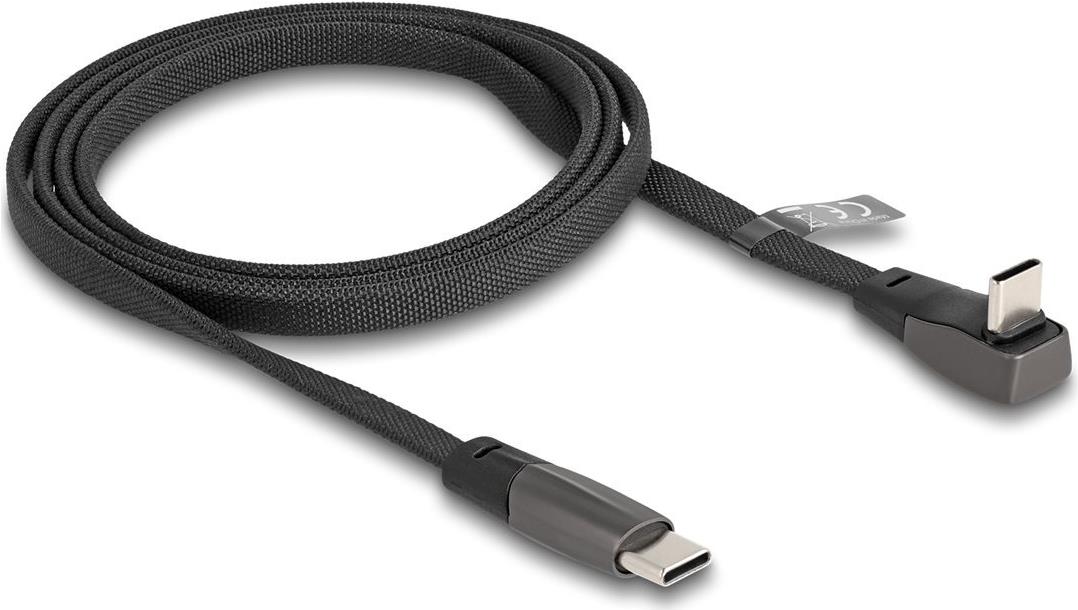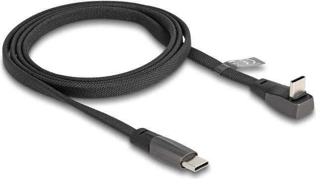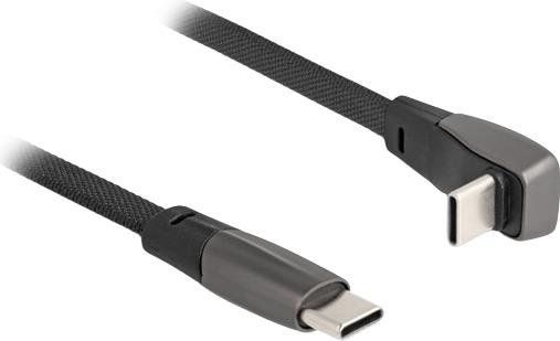 Delock - USB-Kabel - 24 pin USB-C (M) zu 24 pin USB-C (M) gewinkelt - USB 2,0 3 A - 1,0m - unterstützt Power Delivery 3,0, Flachband - Schwarz (80751)