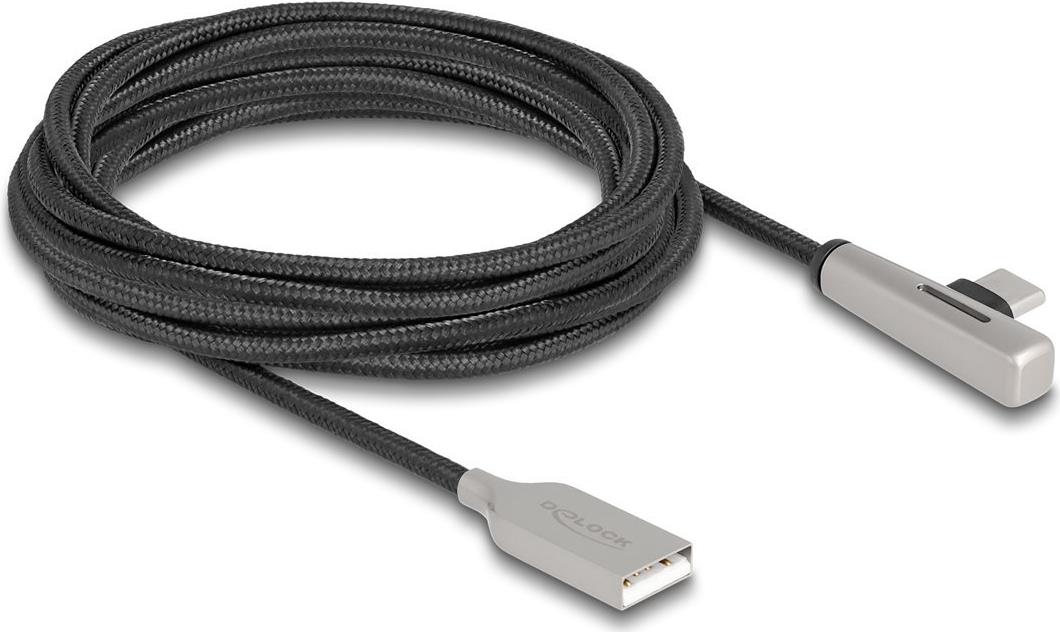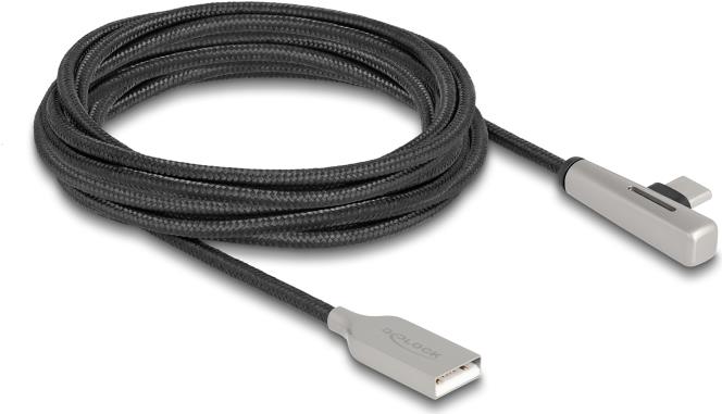 • Delock USB 2.0 Kabel Typ-A Stecker zu USB Type-C™ Stecker gewinkelt mit LED und Schnellladefunktion 60 W 3 m (80768)