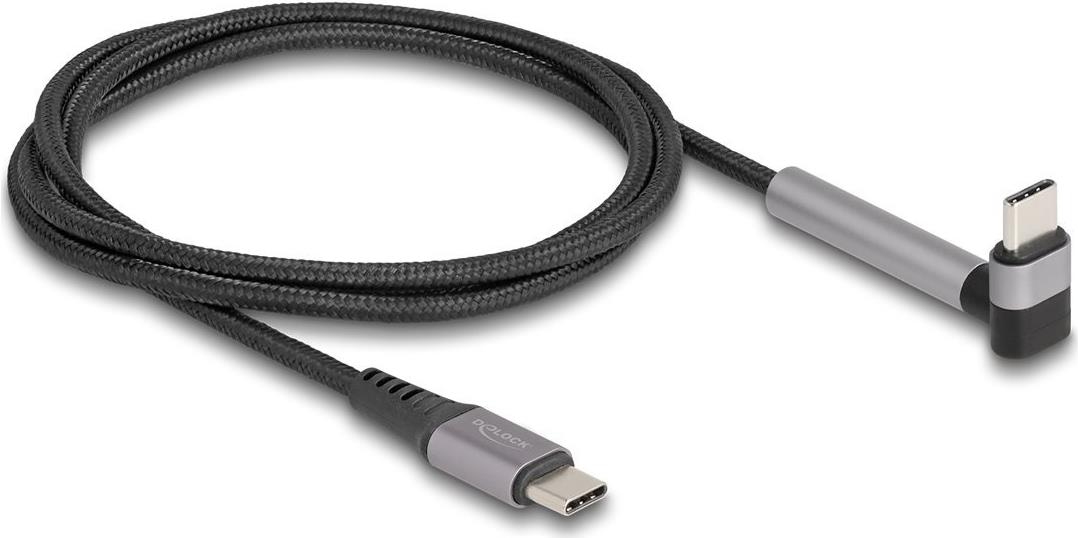 Delock - USB-Kabel - 24 pin USB-C (M) zu 24 pin USB-C (M) schräg, Ständer - USB 2,0 3 A - 1,5m - USB Power Delivery (60W), unterstützt Power Delivery 3,0 - Schwarz, Grau (81172)