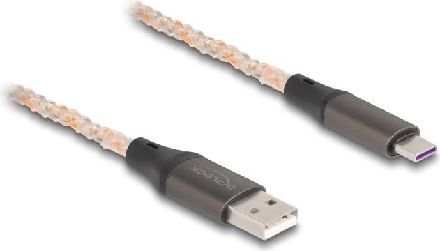 Delock - USB-Kabel - USB (M) zu 24 pin USB-C (M) - USB 2,0 3 A - 1,0m - RGB-Beleuchtung - durchsichtig, kupferfarben (88164)