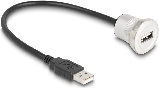 Delock - USB-Verlängerungskabel - USB (M) zu USB (W) Paneel montierbar - USB 2,0 - 30cm - M22 Gewinde - Schwarz, Silber (88181)