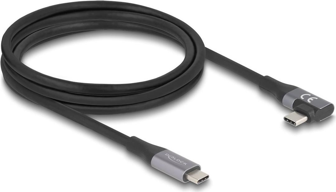 Delock - USB-Kabel - 24 pin USB-C (M) gerade zu 24 pin USB-C (M) links/rechts abgewinkelt - USB 3,2 / Thunderbolt 3 5 A - 2,0m - Baureihe mit erweitertem Leistungsbereich (EPR, unterstützt Power Delivery 3,1, USB-Stromversorgung (240 W), bis zu 20 Gbps Datentransferrate - Schwarz (81132)