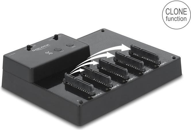 Diese HDD / SSD Dockingstation von Delock dient zum externen Anschluss von bis zu fünf 2.5" SATA HDDs / SSDs über die USB Schnittstelle, sowie das einfache Austauschen der Laufwerke durch Hot Swap. Durch diese Lösung wird kein externes Gehäuse benötigt, da die HDD / SSD direkt in die Dockingstation eingesetzt wird.