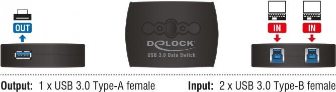 DeLock USB3.0 Sharing Switch 2 - 1 - USB-Umschalter für die gemeinsame Nutzung von Peripheriegeräten - 2 x SuperSpeed USB3.0 - Desktop (87723)