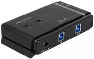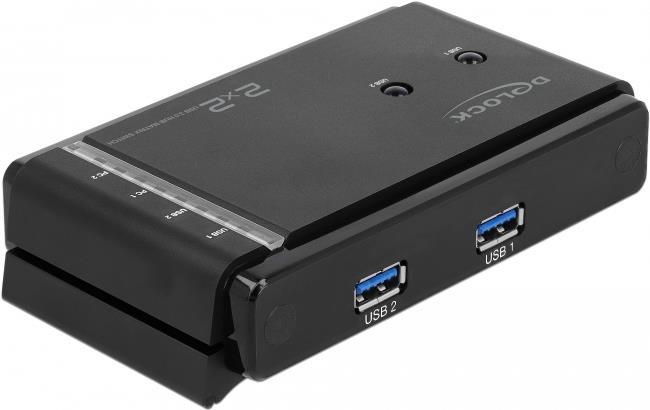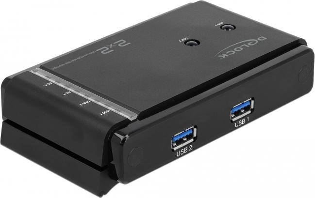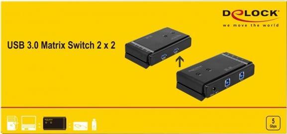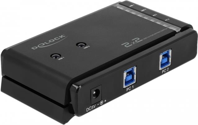 Dieser USB Matrix Switch von Delock kann an zwei Computern verwendet werden, um den Zugriff auf zwei USB Geräte in beliebigen Kombinationen zu ermöglichen. Soll beispielsweise ein Drucker angeschlossen werden, so kann mithilfe der Taste auf dem Switch ausgewählt werden, welcher der Computer mit dem Drucker verbunden wird. Diese Verbindung lässt sich jederzeit wieder umschalten.
