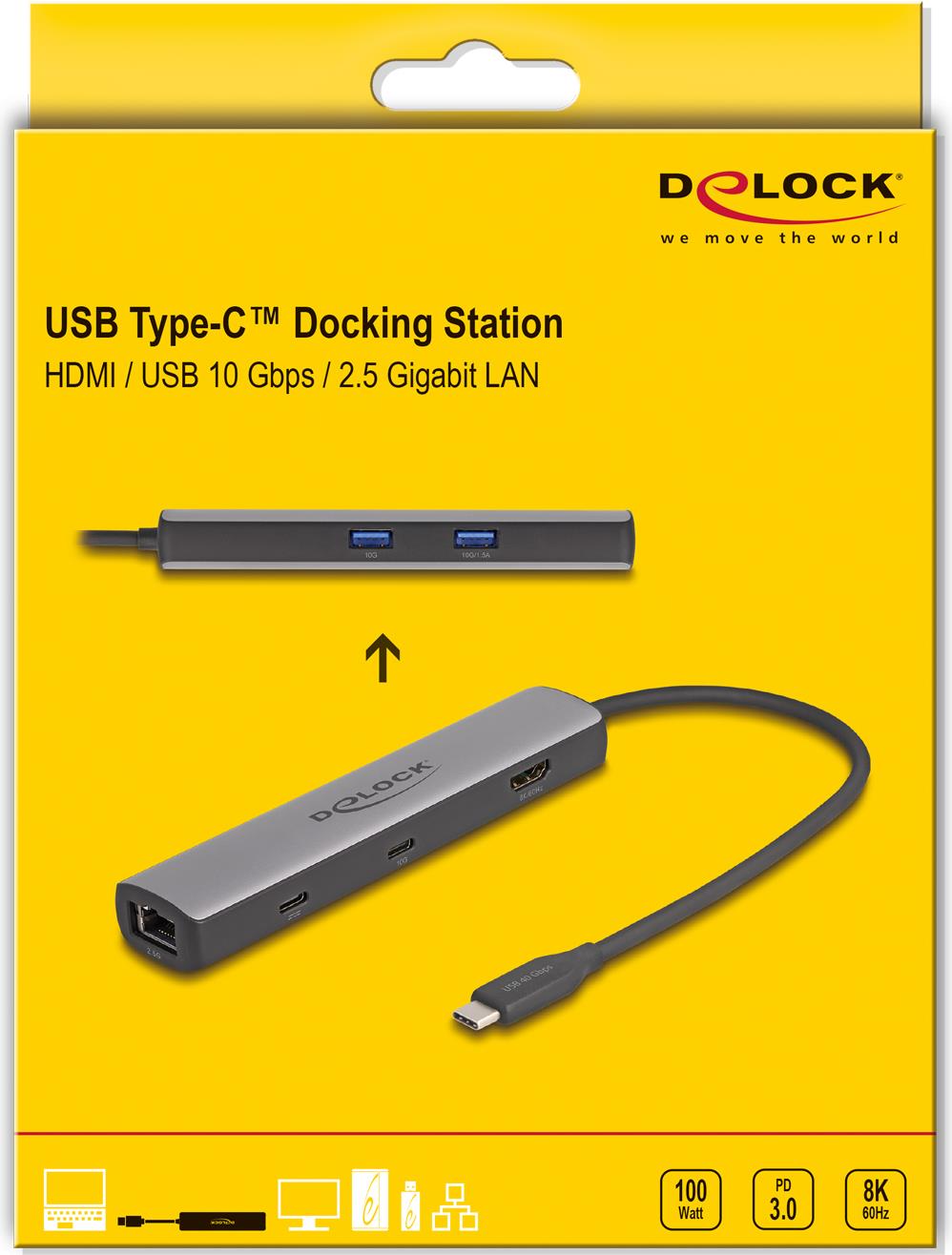 | Produktbeschreibung | Delock - Dockingstation - USB-C 3.2 Gen 2 / Thunderbolt 3 / Thunderbolt 4 - HDMI - 2.5GbE |