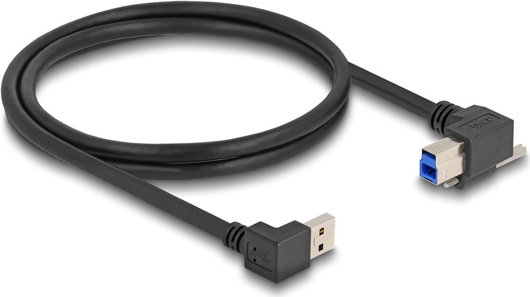 Das Delock USB-Kabel bietet mit seinen 9-poligen USB-Typ-A- und Typ-B-Anschlüssen eine zuverlässige Verbindung. Es unterstützt USB 3.0-Standards und bietet eine Datenübertragungsrate von bis zu 5 Gbit/s. Mit seinen um 90° abgewinkelten und rechtwinkligen Steckern ist es auch in engen Räumen leicht zugänglich und eignet sich daher für eine Vielzahl von Anwendungen, vom Heimgebrauch bis hin zum professionellen Einsatz. Das Kabel verfügt über Rändelschrauben für zusätzliche Sicherheit und gewährleistet stabile Verbindungen. Dieses Produkt entspricht der RoHS 2011/65/EU und anderen Richtlinien und gewährleistet eine umweltfreundliche Nutzung.