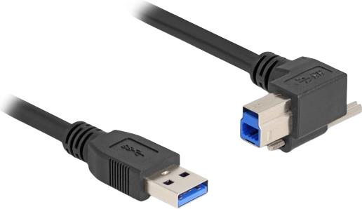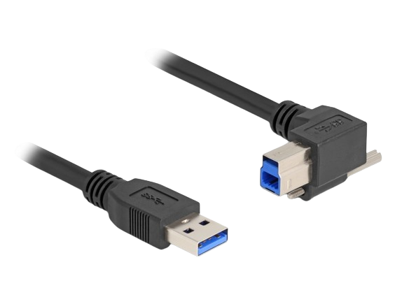 Das Delock USB-Kabel bietet eine zuverlässige Verbindung für verschiedene Geräte mit USB 3.0-Standard für eine schnelle und effiziente Datenübertragung. Mit einer maximalen Datenübertragungsrate von bis zu 5 Gbit/s sorgt dieses Kabel für eine reibungslose Kommunikation zwischen Geräten und unterstützt sowohl Daten- als auch Stromübertragungen. Der linke Stecker ist als gerader 9-Pin-USB-Typ-A-Stecker ausgeführt, während der rechte Stecker einen um 90° abgewinkelten 9-Pin-USB-Typ-B-Stecker hat, so dass sich das Kabel auch bei beengten Platzverhältnissen leicht anschließen lässt, ohne zu verkanten. Das Kabel ist mit Rändelschrauben ausgestattet und bietet eine sichere Verbindung, die ein versehentliches Trennen der Verbindung während der Nutzung verhindert.