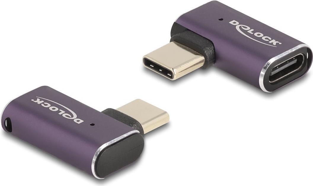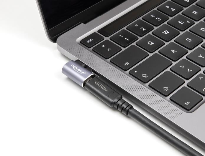 Delock - USB-Adapter - 24 pin USB-C (M) links/rechts abgewinkelt zu 24 pin USB-C (W) - USB4 / Thunderbolt 3 / Thunderbolt 4 / DisplayPort 1,4 5 A - Support von 8K 60 Hz, unterstützt Power Delivery 3,1, unterstützt bis zu 240 W Spannungsversorgung, bis zu 40 Gbps Datentransferrate - Anthrazit (60287)