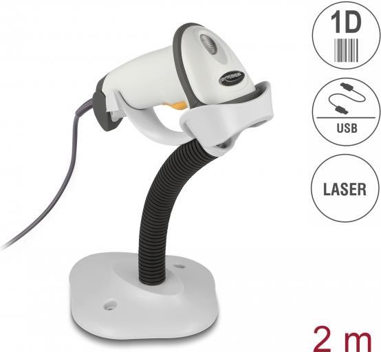 Delock USB Barcode Scanner 1D mit Anschlusskabel und Halterung - Laser - hellgrau (90565)