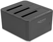 Die Dockingstation verfügt über ein robustes externes Design und ist aus strapazierfähigem Kunststoff gefertigt, was eine lange Lebensdauer und Zuverlässigkeit gewährleistet. Sie unterstützt bis zu drei Speichergeräte und ist damit die ideale Wahl für alle, die mehrere Anschlüsse benötigen. Dank der Einhaltung verschiedener Standards wie FCC und Plug-and-Play bietet dieses Produkt neben effizienter Funktionalität auch eine einfache Bedienung.