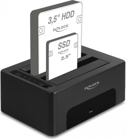 Delock - HDD / SSD Dockingstation Schächte: 2 - 2.5" / 3.5" gemeinsam genutzt (6,4 cm, 8,9 cm) - SATA 6Gb/s - USB3.0 - Schwarz (64187)