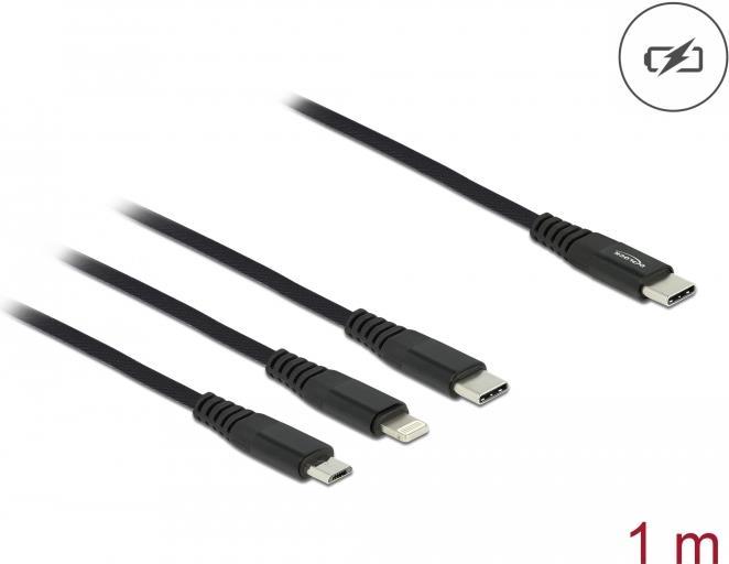 Delock USB Ladekabel 7,60cm (3") 1 USB Type-C™ zu Lightning™ / Micro USB / USB Type-C™ 1 m (87149)
