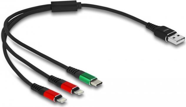 Dieses 7,60cm (3") 1 Ladekabel von Delock dient zum Aufladen diverser Geräte, wie z. B. Tablets oder Smartphones mit Lightning™ oder USB Type-C™ Anschluss über eine USB ...