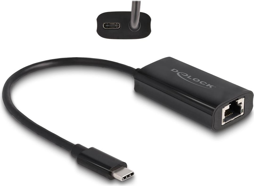 • Delock USB Type-C Adapter zu Gigabit LAN mit Power Delivery 100 Watt (61026)